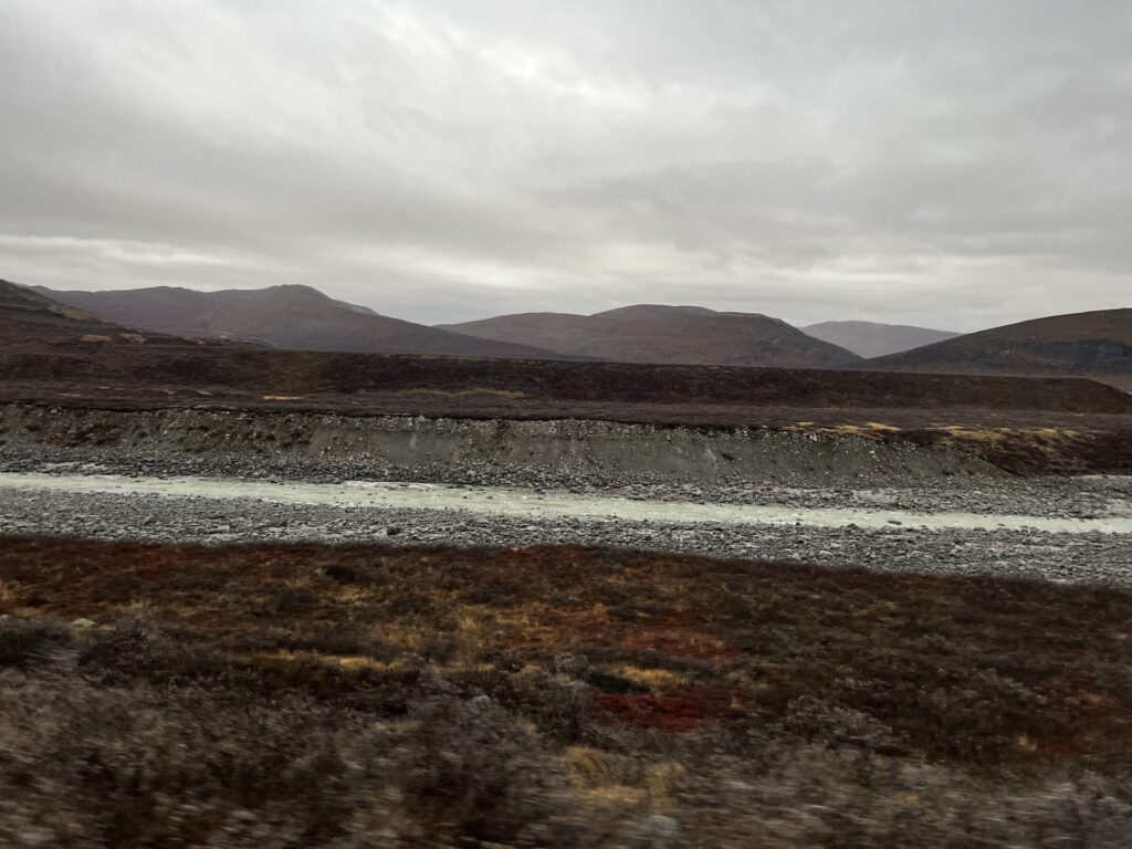 The road was… well… rough. It took 1.5 hours to travel the 37 km (23 miles) from Kangerlussuaq to the ice cap. We stopped twice for photo ops, so let’s say just over an hour in the bus.