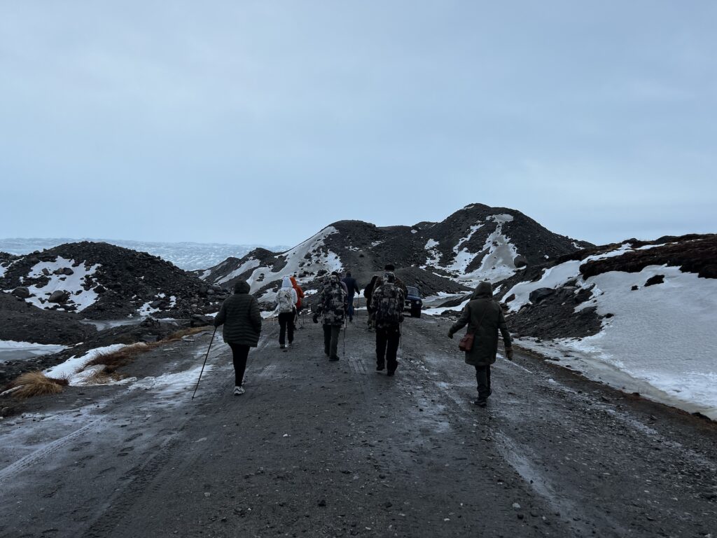 Quick walk out on the ice over, the group headed back to the bus for lunch. Up and down the slick, slushy, somewhat muddy trail. But we made it!!