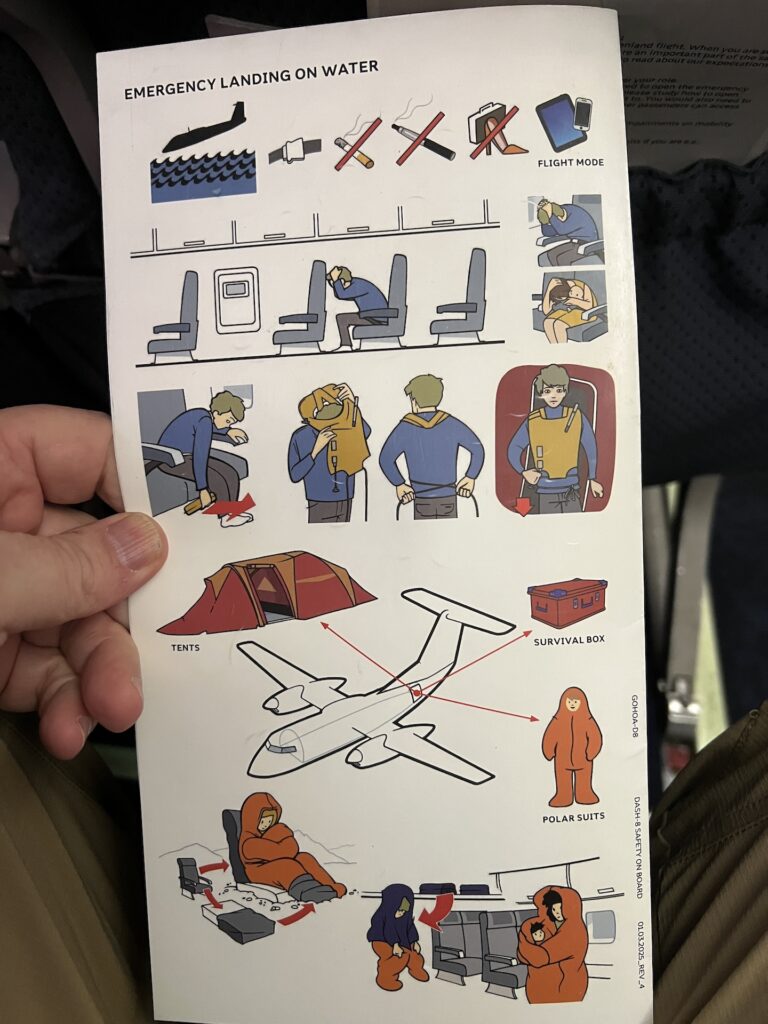 And of course when flying over this type of terrain, the safety instructions are just a little bit different…