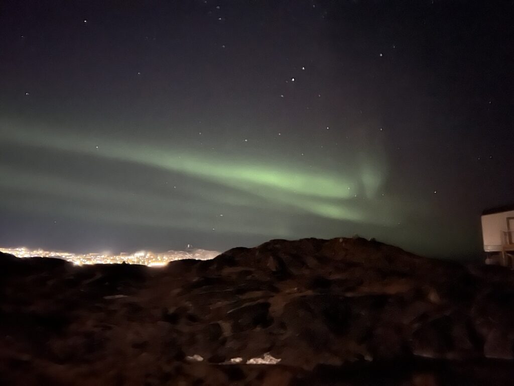 Let’s talk about the flight to Nuuk. As noted, it was moved up with the intention of getting us to Nuuk before the bad weather his. Bad weather as in rain with 16 mph winds that were predicted to gust up to 69 mph, for the two days we’re in Nuuk. Our two big activities in Nuuk were via boat (Northern Lights chasing and another village visit) and were cancelled in advance. Who knows what the next two days will bring, but we are confident there will be more stories to tell!