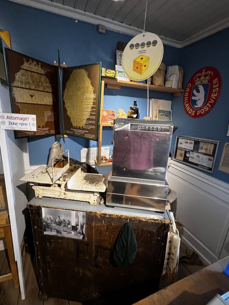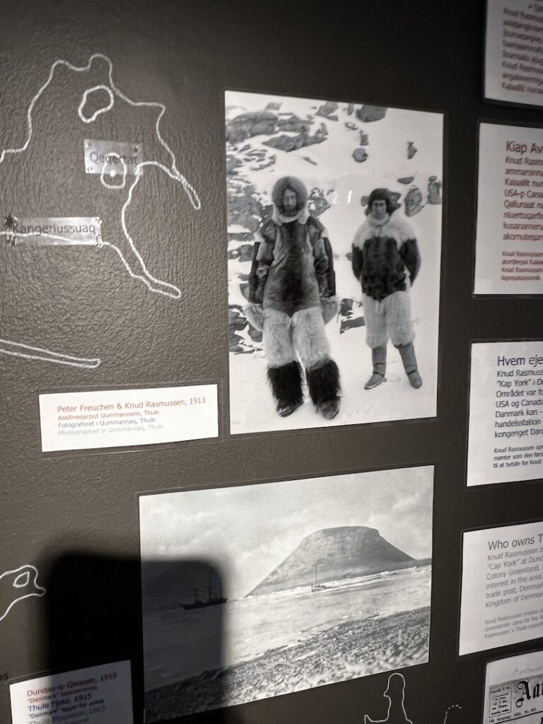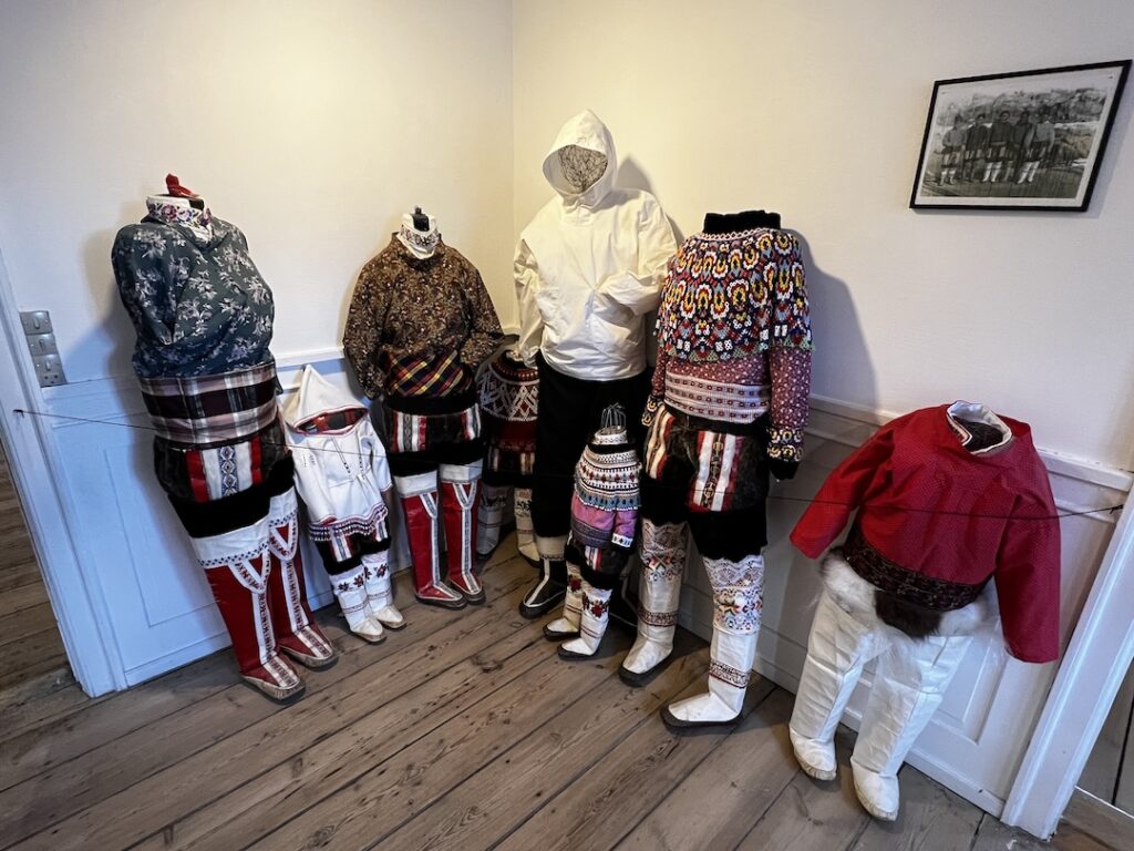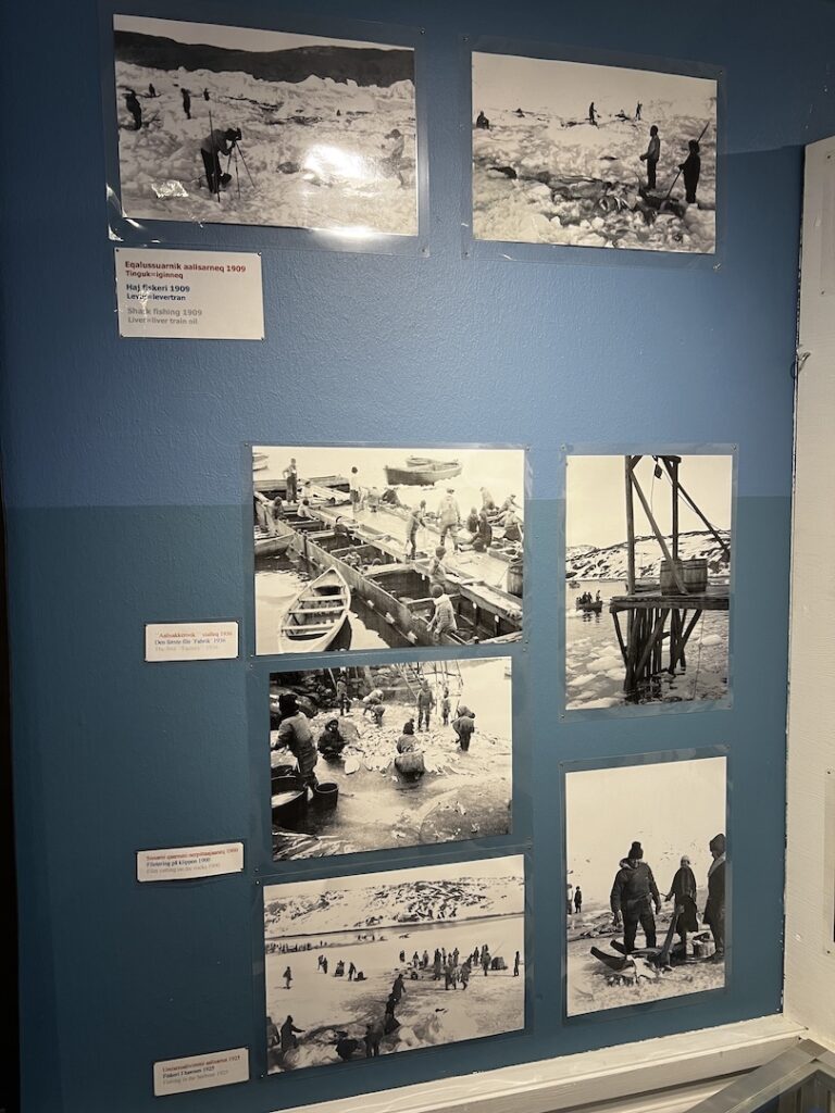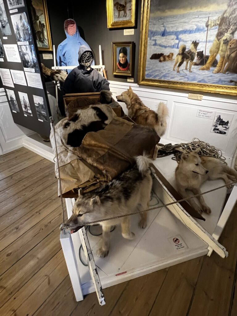 Most were going with our tour leader for the two hour ‘yellow line’ hike near the Icefjord Center. We are certain that it affordable spectacular views, but between the lack of sleep, miserably cold conditions, and gusting winds we opted, along with two others, to visit the Ilulissat History Museum instead. (The museum had been closed during our Sunday and Monday visits, so this was our only opportunity to visit.) The museum is the original house (built in 1846) of Knud Rasmussen’s father and is where Knud, a famous polar explorer was born.