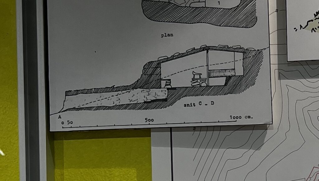 And this sketch needs a little background. Our trip guide out to the village told us that the early settlers (before houses) would build their homes with underground entries. Since heat rises, and with no door, this allowed the home to maximize the warmth it retained. At the museum, we saw a sketch demonstrating how this worked.
