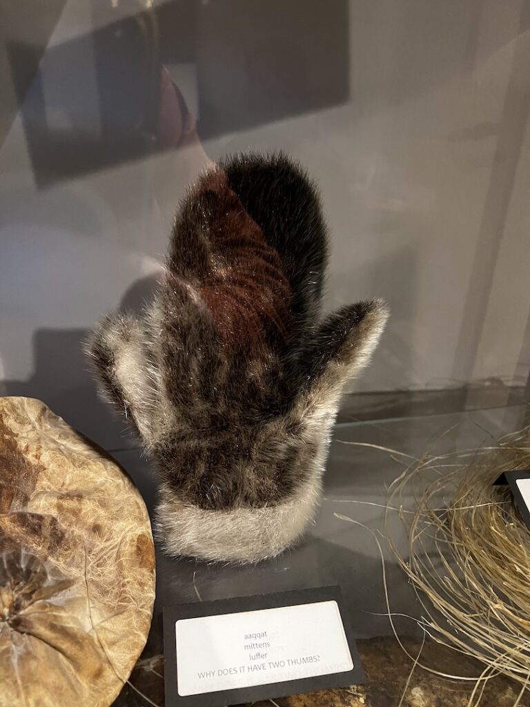 One last interesting tid-bit was this unique, two thumbed mitten. There was a question on a placard (that you could turn over for the answer), asking, why did this mitten have two thumbs? We’ll place the answer at the bottom of the blog so that you can try your own guess-work on why there would be two thumbs.